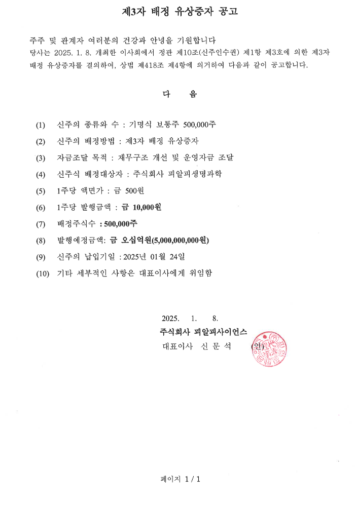 제3자 배정 유상증자 공고